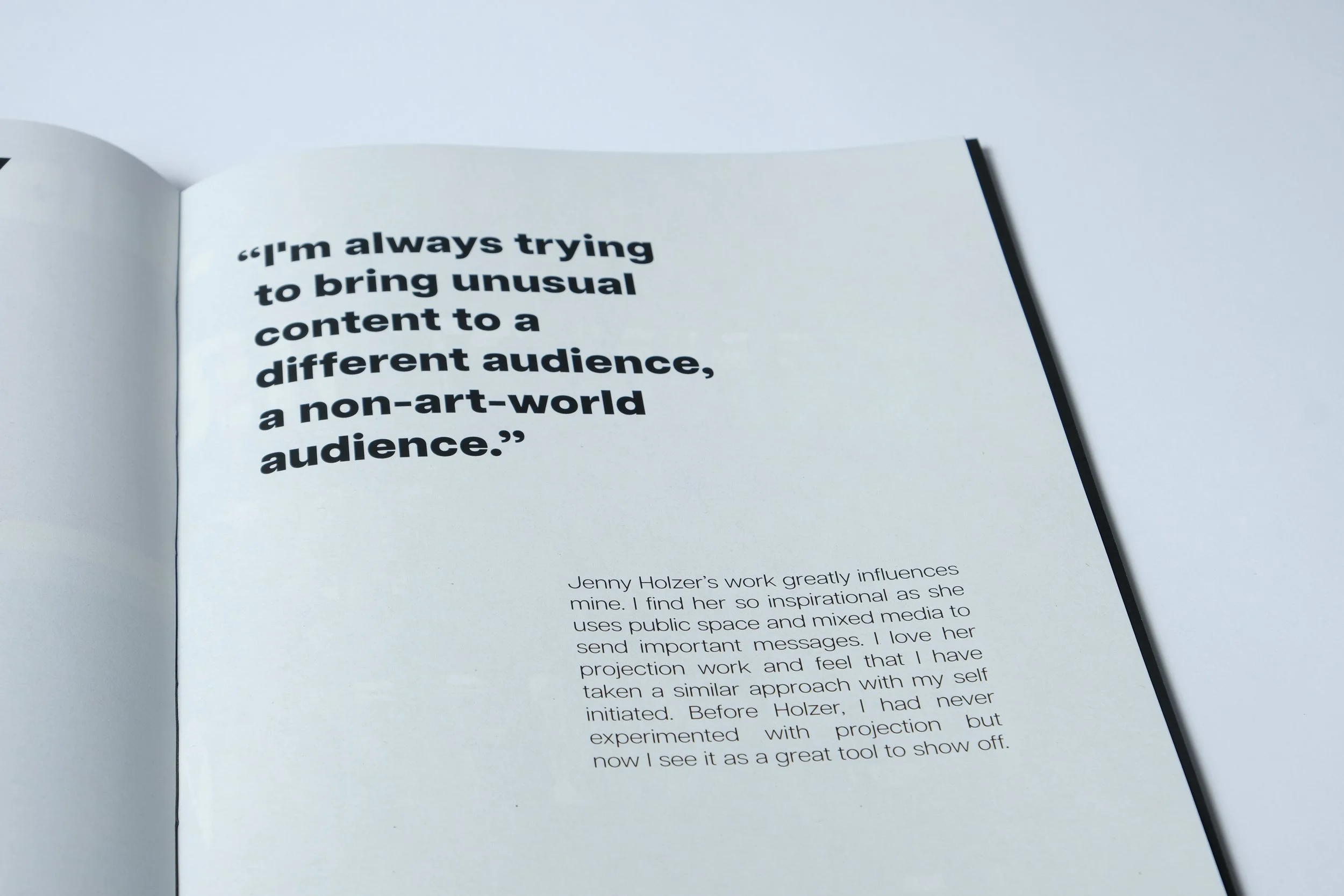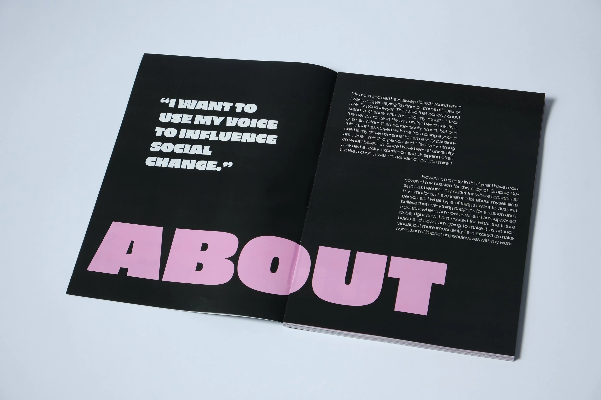 This is a substantial research project which details my exploration of the industry and opportunities which are appropriate to my practise. For my final outcome I designed a 100 page publication. It explores my inspiration and the route I am wanting to take when defining myself as an individual in the creative industry.
